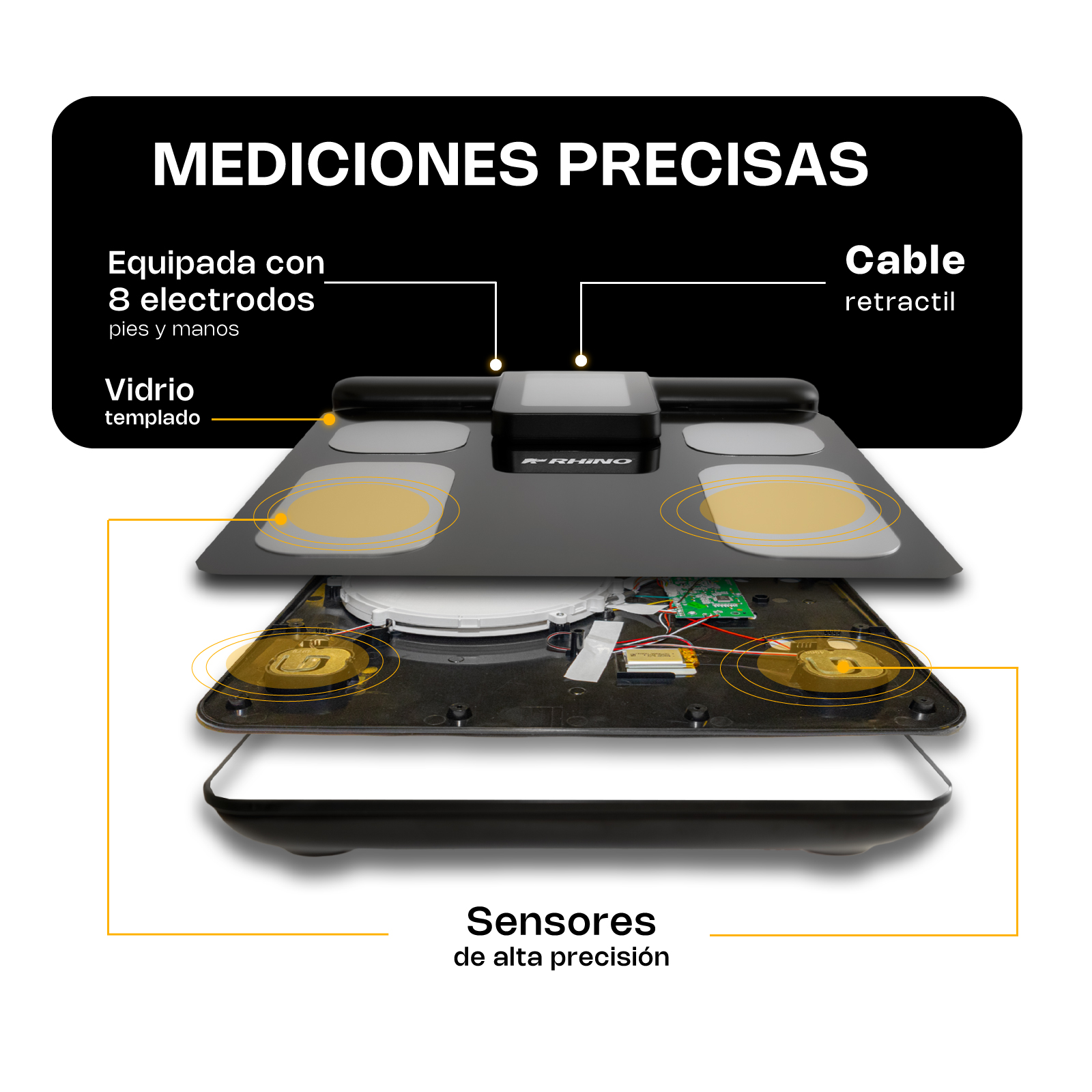 – Barra retráctil con electrodos para medición más precisa